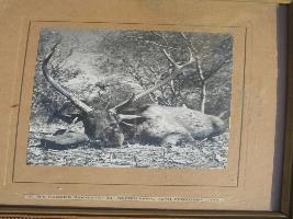 | Description / विवरण | It is a black and white photograph of a dead sambhar. Sambhar has long horn. It was shooted by M. Ganga Singh ji on 10th Feb., 1939. |
