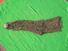 | Description / विवरण | It is made of iron chain and used as helmet.It have one circular plate on top and have groving for attachment of chains for creating helmet. |