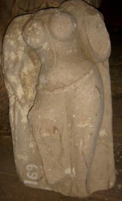 | Description / विवरण | Independent sculpture of Surasundari in standing position. The head, hands and part of the legs are chopped off. She is wearing necklace and tussle. |