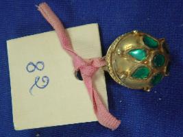 | Description / विवरण | A circular baur, used to fix in the hair in the forehead. It has seven small green stone fixed surface of the baur. |