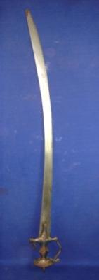 | Description / विवरण | Sword with slightly curved blade with grooves, the handle is made of iron todedar Knuckle guard without any designs. |