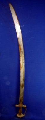 | Description / विवरण | Iron sword having slightly curved blade with grooves and simple Alamgiri hilt with knuckle guard. |