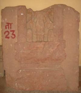 | Description / विवरण | Independent sculpture of Surya in standing position, holding, lotus with both hands. He is wearing vanmala. His head is missing and figure is slightly rubbed off. |
