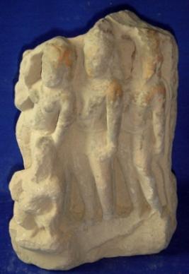 | Description / विवरण | Fragment of sculpture depicting 3 attendants and a dwarf. All of them are defaced and mutilated. It is probably left part of sculpture. |