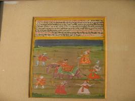 | Description / विवरण | Painting depicted rag Dipak. In this painting Rag is depicted on elephant back. His attendants are walking with him all around holding fire-balls. |