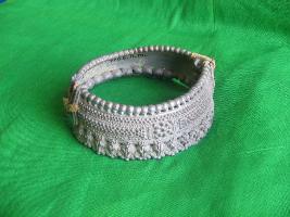 | Description / विवरण | This is a foot ornament traditionally called Saant . It has engraved floral designs and dotted engraved design. It is used by local people. |