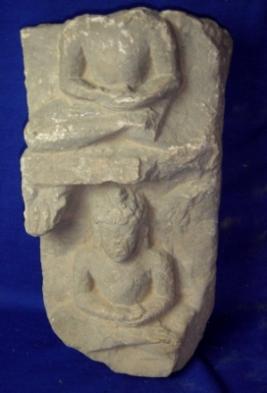 | Description / विवरण | Sculptured architectural fragment depicting two Tirathankaras sitting in dhyana mudra. The head, left knee of the Tirathankara sitting on upper part are missing, the face of the Tirathankara sitting in lower part is rubbed off and his knees are chopped off. |