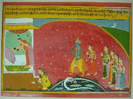 | Description / विवरण | Miniature painting based on Velli Krishna Rukmani. Krishna and Rukmani, followed by her attendants, are walking towards the palace. Their bed and the place are being prepared for their arrival. |