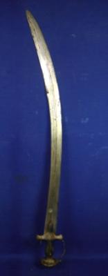 | Description / विवरण | Sword with slightly curved blade with grooves, the handle is made of iron todedar Knuckle guard without any designs. |
