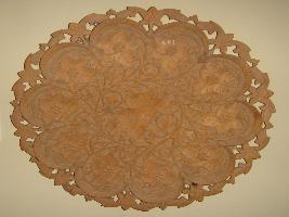 | Description / विवरण | Wooden dish round in shape carved with floral designs on it. |