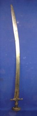 | Description / विवरण | Sword with slightly curved blade with simple iron hilt. |