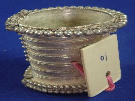 | Description / विवरण | A bracelet locally known as churdh having applique designs at both sides on borders. On the body it has seven lines having incised dots in it. A hook is there to close the bracelet. |