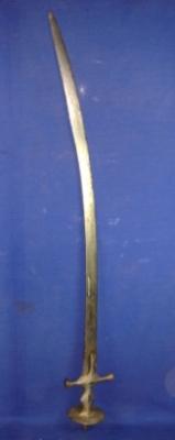 | Description / विवरण | Sword with slightly curved blade with simple iron hilt. |