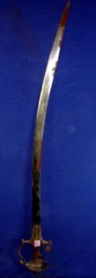 | Description / विवरण | Iron sword with slightly curved blade. The hilt has knuckle guard with golden koft work but the work is almost rubbed off. |