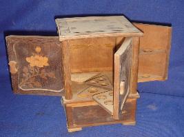 | Description / विवरण | Wooden rectangular cigarette case, with door at four sides and decorated with inlay work in floral patterns. |