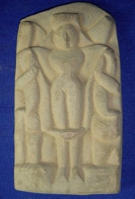 | Description / विवरण | Stone plaque depicting four armed Vishnu, attributes from right below 1 Holding mace 2 Abhaya mudra 3 Holding the vanmala 4 Chakra. |
