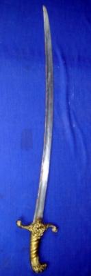 | Description / विवरण | Simple single edged sword having lion head design hilt of brass. |