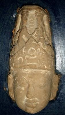 | Description / विवरण | Vishnu head wearing a Kriti Mukuta. His eyes are half closed, raised eyebrows, nose is rubbed off, lips are prominent and has elongated earlobes. |