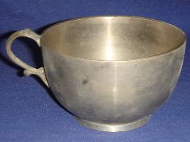 | Description / विवरण | Metal cup with circular flat based and a handle on it. |