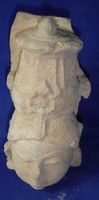 | Description / विवरण | Vishnu head wearing Kirti mukuta. The eyes, nose and lips are prominent. He is wearing round earring. |
