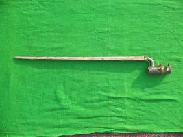 | Description / विवरण | It is an Italian Baynot. It has triangular shape blade. All three edge of the blade is sharp and tip is pointed. It has a cylindrical hook with screw. |