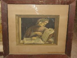 | Description / विवरण | Print of Donte , sitting and reading books, framed in a wooden and glass frame. |