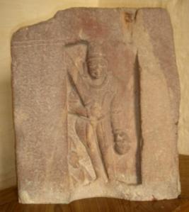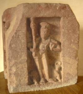 | Description / विवरण | Sculptured architectural fragment of pillar depicting Yam in standing position holding a Kharbhanga with right hand and his vahan buffalo is seen below. On another corner, Narit -one of the digpalas is depicted in standing position holding a sword with left hand with vahan seated in the corner below. |