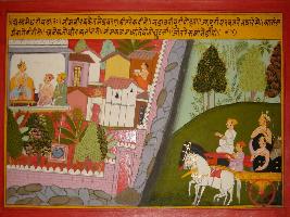 | Description / विवरण | Miniature painting based on Mahabharat - Ashwamegh parva. Bhim is going to the city of Bhadrawati, the city is surrounded by mountains. There is only one entry to the city which is heavily guarded. |