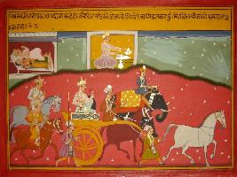 | Description / विवरण | Miniature painting based on Mahabharat - Ashwamegh parva depicting an army following the horse left after the Ashwamegh yagna. |