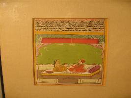 | Description / विवरण | This painting depicting Ragni Ramkali. The rag is Hindol and ragni Ramkali. In this painting king and quaeen are talking. King is wearing orange choga, cap pagdi , dupatta and the queen is wearing yellow dress and they are sitting on the bed |