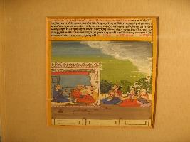 | Description / विवरण | It is depiction of Ragini Bilaval .In this painting queen is dressing herself and attendants are helping her. The queen is wearing orange dress and she is sitting under a tent. This tent is decorated. |