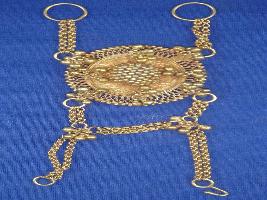 | Description / विवरण | Hathbandh circular in shape, used to be worn in hands. It has four chain for fixing it with finger while some Jhumka also fixed on the upper side of the Hathbandh. Besides, it has Jali design. |