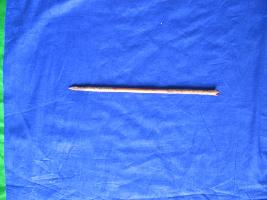 | Description / विवरण | Tip is cylindrical but top portion is four faced and pointed. Stick is in design in white and red colour and bottom of the stick also has same deocration of light orange background. |