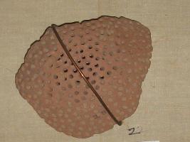| Description / विवरण | It is a part of pottery. The pottery has small holes on the surface. Well distributed in all part of pottery. It is red ochre in colour. It is the lower portion of pottery. |