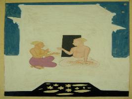 | Description / विवरण | Miniature painting based on yoga sadhana. It is an incomplete painting. Here two men are depicted sitting and talking in a hut. |