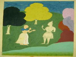 | Description / विवरण | Miniature painting based on yoga sadhana depicting a standing sage with a disciple in the centre of the painting. It is an incomplete painting. |