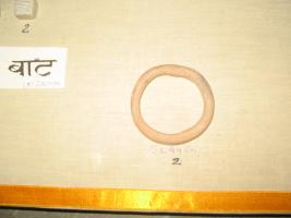 | Description / विवरण | Made of terracotta. It is a bangle, circular in shape. It is finally given a design to give it a thick and thin shape. Red ochre in colour. |