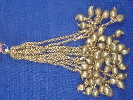 | Description / विवरण | Lumbak, having eleven strings attached to a circular ring. Each string has a small fish design from which again two strings starts and each string has two mango shaped designs at its bottom. |