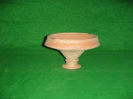 | Description / विवरण | It is made of terracotta. Both side open. Conic in shape with neck. Neck has two raised circle around it. Rest portion of chilam has decorated made of circles , these circles are made with pointed lines. It also has scratched lines around it. |