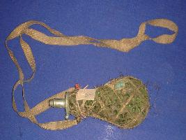 | Description / विवरण | Gun powder container with a golden colour strip is attached to carry the container, It is covered by a green coloured cloth and the cloth is torn at some part. |