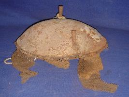 | Description / विवरण | Iron helmet with chained zeba for the protection of neck, and has a kilangi for the insertion of the flag of the respective army. The biniposh is broken. |