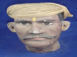 | Description / विवरण | Male head wearing a turban of cream in colour and golden lines, have dark complexion with moustache and yellow tilak on forehead. |