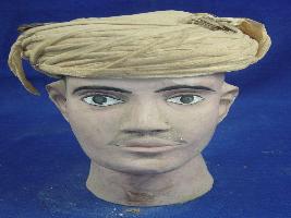 | Description / विवरण | Male head wearing a faded turban with many folds. It has moustache and pink complexion face. |