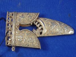 | Description / विवरण | Cover of dagger, having floral design and Jali work. Only lower portion and upper portion is available. |