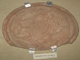| Description / विवरण | This is a decorative terracotta pottery with little depth. Center is having five pateled flower Piple leaf type in it with circle. Circle is having geometric design in it with the carving. For giving depth to this potter the artisan made a border through out the pottery. |