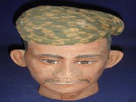 | Description / विवरण | Male head wearing turban of printed green colour and having fair complexion and thick moustache and broad nose. |