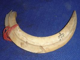 | Description / विवरण | Tusk of a boar, it is semi circular in shape, one end is very pointed. |