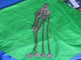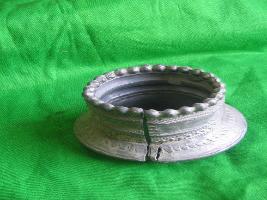 | Description / विवरण | This is a head ornament worn by local people traditionally called Chabka . It has a circular plate with engraved circular design with a four long and four small chains to be tied with plate. Chains have small circular plates at the end with engraved design |