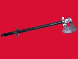| Description / विवरण | Axe is made of iron . Upper portion of axe is flat and lower portion is sharp and semi circular in shape & has grove. Wooden handle with iron sheet at bottom is fit in the grove. |