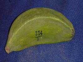 | Description / विवरण | Banana, made of clay, painted in green colour. |